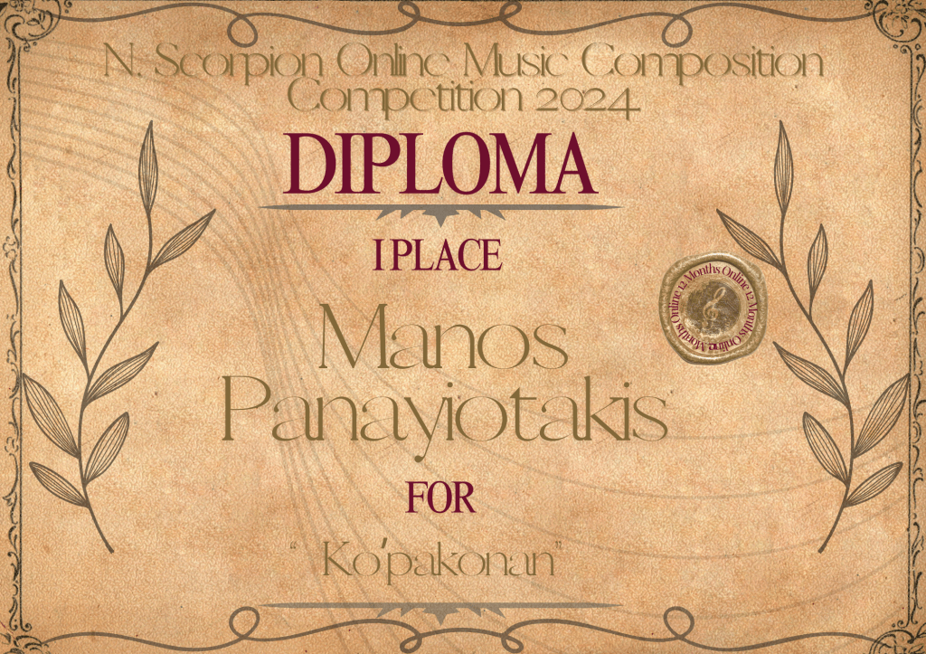 3) Cretan Dance for Piano (2023), premiered by Elena Perisynaki in January 2024 at the Πολιτιστικό Συνεδριακό Κέντρο Ηρακλείου – Cultural Conference Center Crete (soon to be released by Phasma music)
